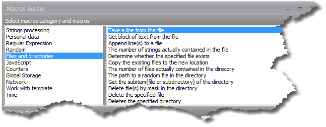 To extract text from the file use a special macro 'Extract line from text'. You can find this option in the Macros Builder under the heading 'Files and Directories'.