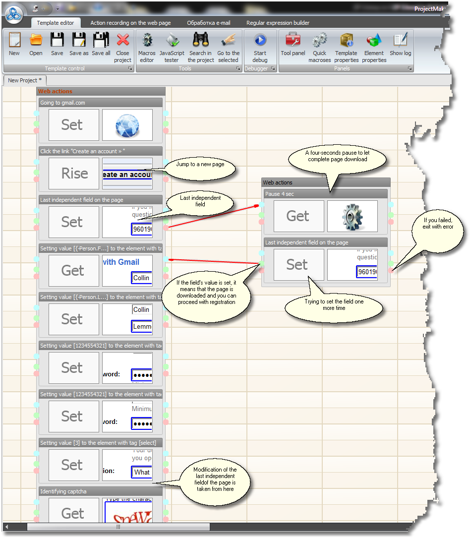 From the template control panel you can activate a JS execution macro. This gives you the opportunity to write your own small text processor or a mathematical function processor (this one may be helpful to recognize mathematical CAPTCHA's written as plain text). Thus, if you suffer from lack of functionality of your existing macros you do not need to write a PHP script to put in hosting and activate each time with other parameters or use a step to work with your own code - all this complexity just to compute a small function. |