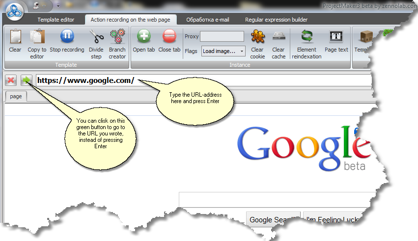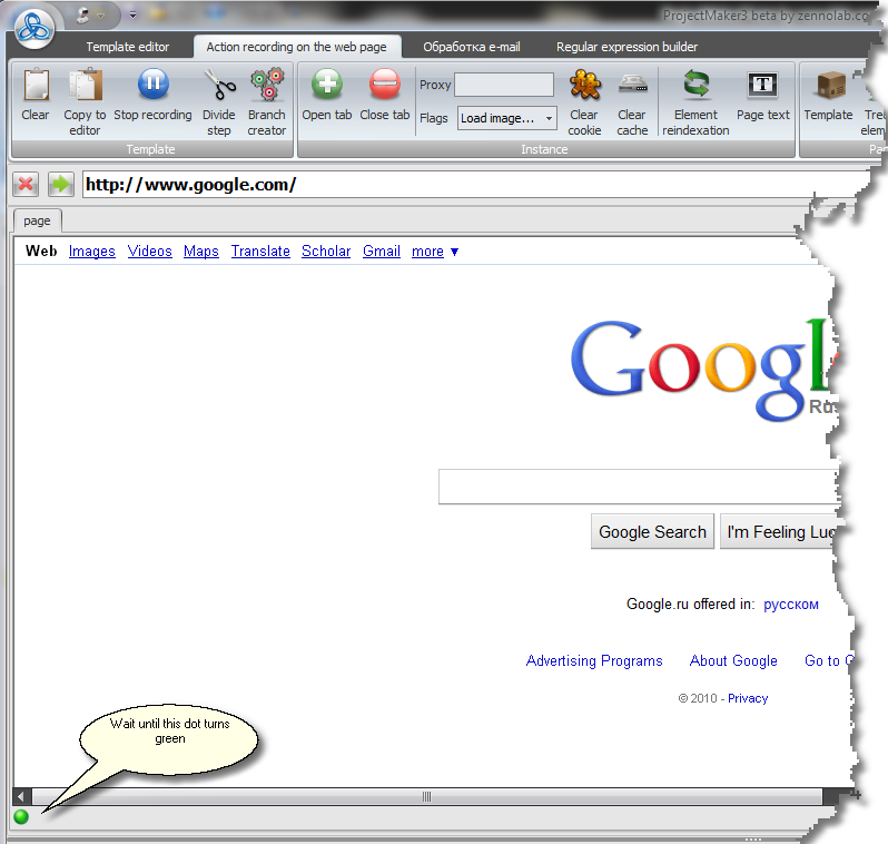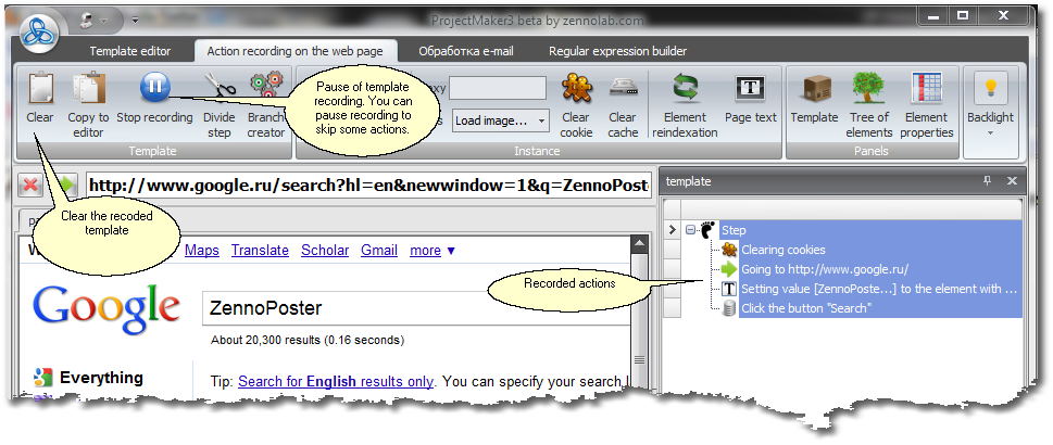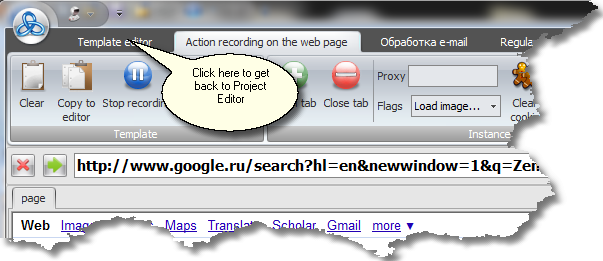 After the page is completely downloaded you can start recording your actions. Basically, you just need to perform your ordinary actions, i.e. clicking on links and buttons - the program will be recording all this.