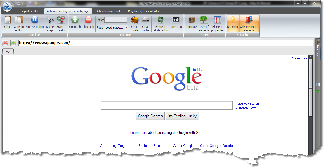 In the middle of the screen the web browser in which you are performing actions that need to be recorded is displayed:
