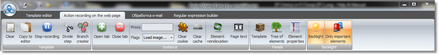 The action recording section just like the template editor comprises controls divided into thematic groups on top,