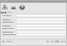 To activate the modules recognition CAPTCHAs, enter the login and password (or key) in the special fields.