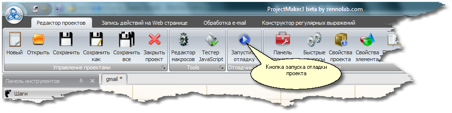 Для проверки проекта существует встроенный отладчик, чтобы его запустить нажмите в редакторе проектов кнопку "Запустить отладку".