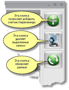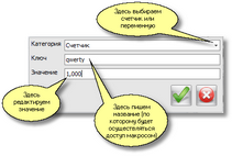 В нем можно добавлять или удалять счетчики и переменные, задавать или изменять их значения.