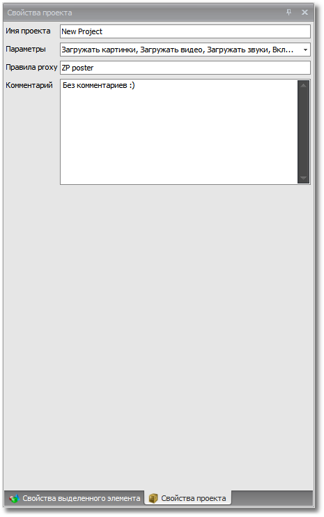 Панель свойств проекта