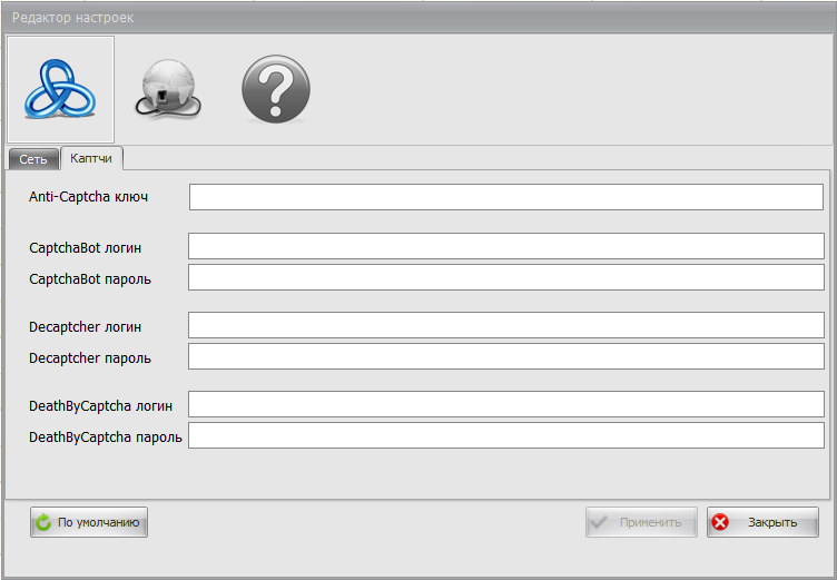 Для подключения модулей распознавания каптч, введите логин и пароль (или ключ) в отведенные поля.